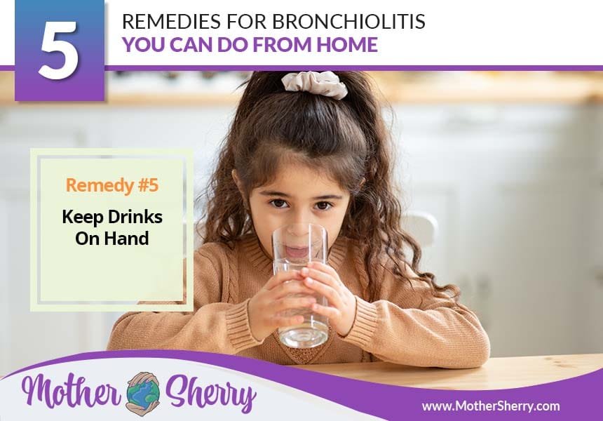 Children and adults with bronchiolitis will likely eat and drink less often than usual. While they don’t need to drink more fluids than usual, preventing dehydration is important. For toddlers and older children, keep water, juice, or an electrolyte drink on hand at all times and give them a sip often.