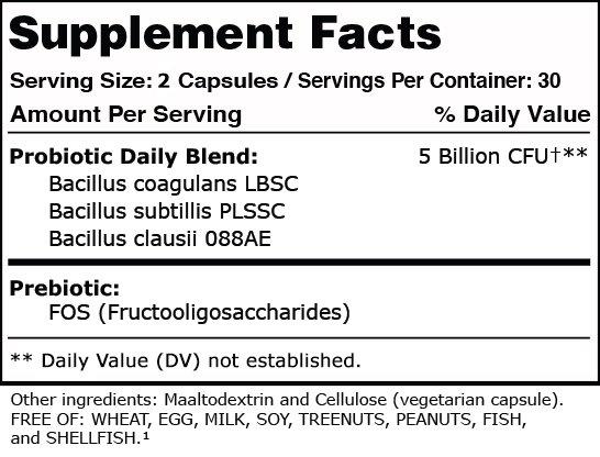 | Content | MicroBiome Boost is specifically designed as a robust and rapidly absorbed probiotic and prebiotic supplement. It consists of a unique blend of ingredients formulated to ensure maximum absorption, making it an exceptional choice in the domain of probiotics supplements.INGREDIENTS LISTBacillus coagulans LBSC, Bacillus subtillis PLSSC, Bacillus clausii 088AE, other assorted probiotic strainsQUANTITYThis listing is for ONE bottle of MicroBiome Boost.IMPORTANT NOTESOur selection of ingredients are chosen for their ability to provide potent probiotics and essential nutrients, significantly raising it above the standard probiotics and prebiotic supplements. The advanced formulation ensures a high rate of absorption, therefore ensuring that you receive the maximum benefits from each nutrient.GOOD TO KNOWPlease be aware of potential allergens in the ingredients list. Our facility also handles other allergen-containing products. There's always a chance of cross-contamination, and this product may have come into contact with other allergens. If you have any concerns or queries, please do not hesitate to reach out.Note: This statement has not been evaluated by the Food and Drug Administration. This product is not intended to diagnose, treat, cure, or prevent any disease. | Women’s Support is a carefully blended formula full of vitamins, herbs, fruits, and vegetables specifically chosen to help women, and is designed to support you through all phases of your adult female life. Whether you are pregnant, a young adult, or aging gracefully, you can benefit from our supplement designed for women. INGREDIENTS LISTPROPRIETARY FEMALE BLEND: Dong Quai Root (Angelica sinesis), Wild Yam Root (Dioscorea villosa), Red Raspberry Leaf (Rubus idaeus), Siberian Ginseng Root (Eleutherococcus senticosus), Chaste Tree Fruit (Vitex agnus-castus), Sarsaprilla Root (Smilax medica), Damiana Leaf (Turnera diffusa), Licorice Root Extract (Glycyrrhiza glabra), Kelp Powder (Ascophyllum nodosum)(Algae), Proprietary Whole Food Cultured Media and Enzyme Delivery System Blend, Yeast, Pea Protein, Vitamins [B1 – Thiamine, B2- Riboflavin, B3 – Niacin, B6 – Pyridoxine, B9 – Folate (Folic Acid), B7 – Biotin, B5 – Pantothenic Acid], Organic Fruit & Vegetable Blend (Wild Blueberry, Apple, Raspberry, Strawberry, Oat Bran, Cranberry, Grape, Orange, Raspberry Seed, Red Pepper, Carrot, Blackberry, Bilberry, Tart Cherry, Cinnamon, Broccoli, Cucumber, Pomegranate, Beet, Black Currant, Okra, Wild Yam), Probiotics (L. acidophilus DDS-1, B. lactis, B. bifidum, L. helveticus, L. brevis, L. casei, L. rhamnosus, L. plantarum, L. salivarius, L. lactis), Plant Enzymes (Amylases, Proteases, Lipase, Cellulases), Uterus Powder (from Bovine)(Argentina) Predigested, Ovary Powder (from Bovine)(Argentina) Predigested, Pregnenolone, Hypromellose (vegetarian capsule), Magnesium Stearate, Rice Flour, Maltodextrin, Silicon Dioxide. QUANTITYThis listing is for ONE bottle of Women’s Support. IMPORTANT NOTESEach ingredient is chosen for its benefits, including but not limited to: helping hormone balance, reducing the risk of birth defects, supporting fetal development, and boosting energy during pregnancy and breastfeeding. GOOD TO KNOWPlease be aware of ingredients/allergens that could affect you. We also use other ingredients/possible allergens in our facility. There is always a possibility that outside ingredients and finished products have come in contact with this product. Please reach out if you have any concerns or questions. | Your metabolism is a key part of keeping your body healthy and making you feel good. Our blend of key herbs and minerals is specially made to help you boost your metabolism, control your cravings, and digest fats better. Metabolism Activator also helps curb cravings for sugars and supports a healthy balance of blood sugars, meaning you can stay healthy and feel great. INGREDIENTS LISTMagnesium, zinc, copper, manganese, chromium, liapse, garlic, turmeric, Garcinia Cambogia, Cinnamon Verum, Raspberry Ketones, Rhodiola Crenulata, glucomannanase, Amylase, Protease I, Protease II, Peptizyme SP, Lipase, Invertase, Cellulase, Lactase, Maltase, Phytase, Patented organic Zinc, Patented organic Copper, Patented organic Manganese and Molasses. QUANTITYThis listing is for ONE bottle of Metabolism Activator. IMPORTANT NOTESEach ingredient was picked for its benefits, including but not limited to: breaking down fats, maintaining a healthy metabolism, curbing feelings of hunger, combatting cravings, and supporting blood sugar balance. GOOD TO KNOWPlease be aware of ingredients/allergens that could affect you. We also use other ingredients/possible allergens in our facility. There is always a possibility that outside ingredients and finished products have come in contact with this product. Please reach out if you have any concerns or questions. | When you hear someone say "bacteria", it's easy to immediately think of it as bad, but there are actually good bacteria! They're important for supporting our body's overall health and well-being. Probiotics occur naturally in our bodies and often grow in the intestine. They're a major player in supporting the digestive and immune systems. Digestive Probiotic can help support these good bacteria in doing their jobs even more successfully. INGREDIENTS LISTZinc, copper, manganese, Jerusalem Artichoke, proprietary probiotic blend, proprietary enzymatic blend. QUANTITYThis listing is for ONE bottle of Digestive Probiotic. IMPORTANT NOTESEach ingredient is chosen for its benefits, including but not limited to: supporting healthy digestion, maintaining the health of intestinal flora, and supporting the immune system. GOOD TO KNOWPlease be aware of ingredients/allergens that could affect you. We also use other ingredients/possible allergens in our facility. There is always a possibility that outside ingredients and finished products have come in contact with this product. Please reach o
